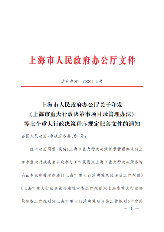 上海市人民政府办公厅关于印发«上海市重大行政决策事项目录管理办法»等七个重大行政决策程序规定配套文件的通知-快3大小单双平台