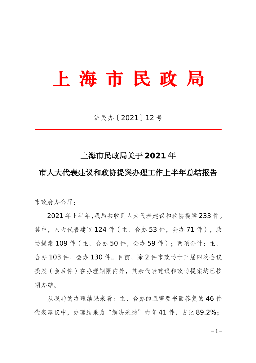 | 文件编号: | 沪民办〔2021〕12 号 | 公开类别: | 主动公开 |
