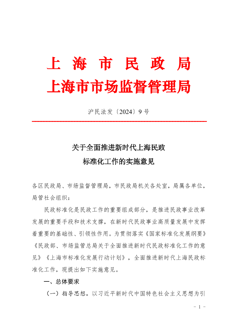 关于全面推进新时代上海民政标准化工作的实施意见 ( 2024-11-21 )