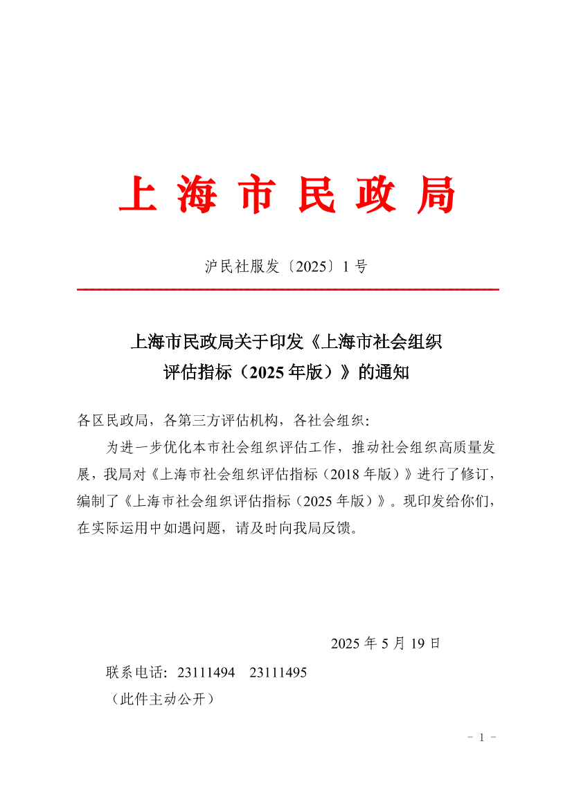 上海市民政局关于印发《上海市社会组织评估指标(2025年版)》的通知 ( 2025-05-22 )